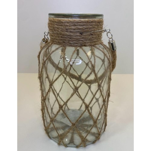 vaso feito em vidro incolor, com detalhes de corda sisal. Dimensões: Alt..
