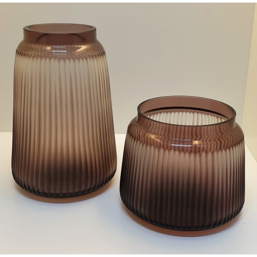 Vaso decorativo feito em vidro na cor marsala, com textura canelada. Dimensões: A..