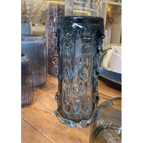 Vaso de vidro Fumê com detalhes no vidro, esse vaso é imponente e sofisticado ficará perfeito em todos os ambientes!!