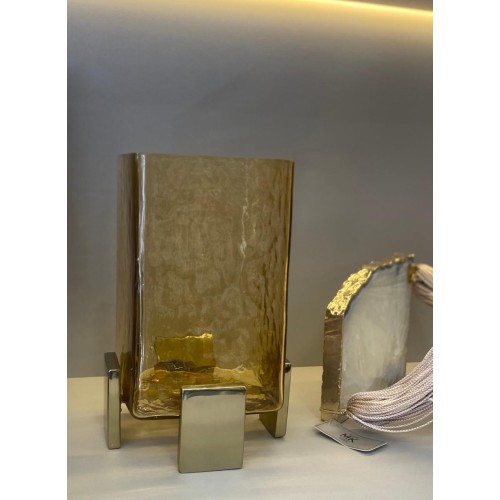 Vaso de Vidro Quadrado Âmbar Martelado P