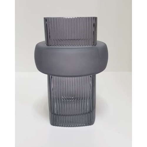 - Modelo: Vaso de Vidro Cinza Canelado P